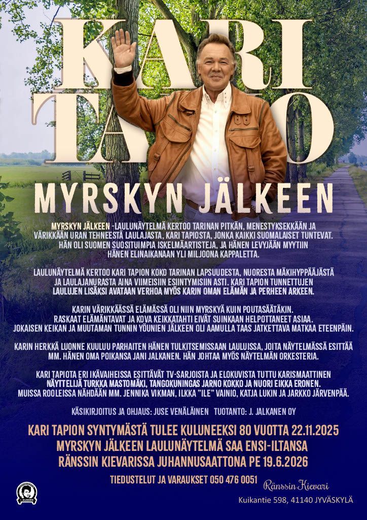 Kesällä 2026 ensi-iltansa saa uusi musiikkinäytelmä, joka kertoo Kari Tapion elämäntarinan ja hänen musiikkiuransa vaiheet